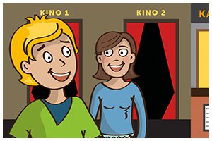 Jonas möchte Lisa ins Kino einladen, um mit ihr einen gemütlichen Abend zu verbringen.